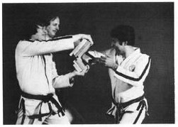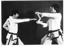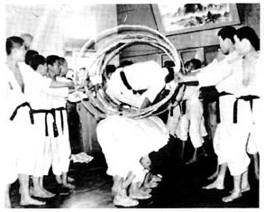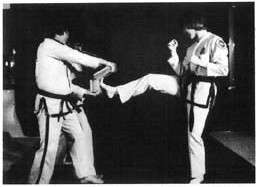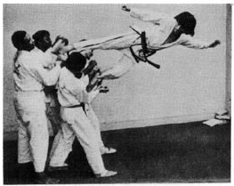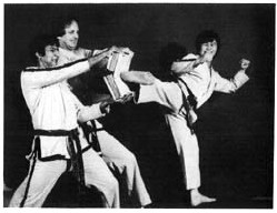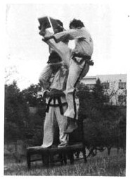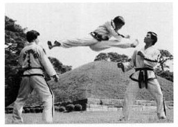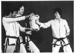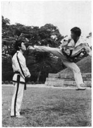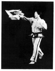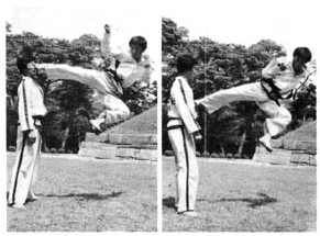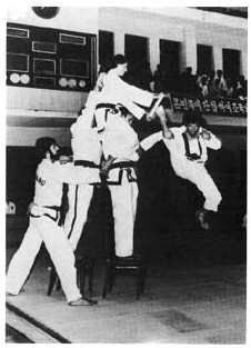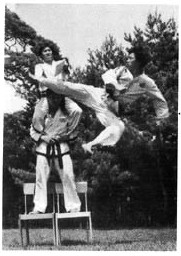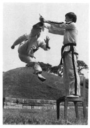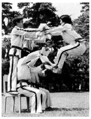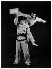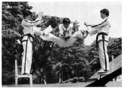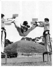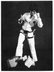 | 25. Smash one piece of roof tile, placed on head, with a flying twisting kick | |