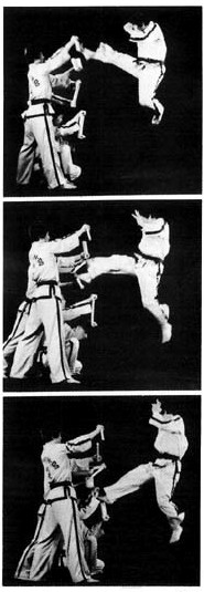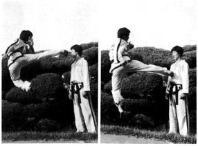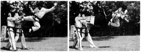 | 13. Smash two pieces of roof tile with a flying front and turning kick | |