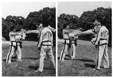 | Front punch with a forefist | Turning kick with a ball of the foot |