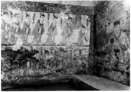 The mural painting at Duk Hung Tomb (409 A.D.) shows general Jin, the premier of Yoo-Ju province, Koguryo, receiving the 13 governors. Yoo-Ju province consisted of 13 counties including Dae-Goon which was situated in the extreme west of that province.