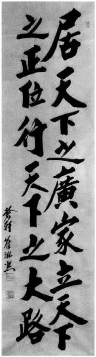 Strong conviction can be gained through the broad and deep “Ki” —spirit. Ki is a form of active energy which fills every physical cell and organ while “Chi”—will is the motivating force: the former moves and the latter leads. If “Ki” is nurtured with great care and allowed to grow based on humanity and justice, its soaring power and outreaching strength can fill the heaven and earth, enabling man to reach a new height of great achievements, so Mencius exhorted his disciples.